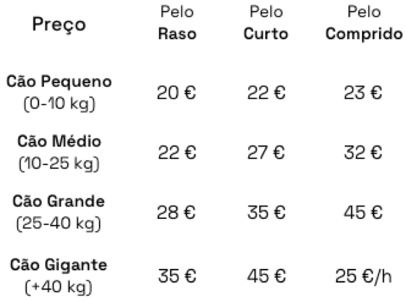 *Exceto as raças _ 25 € / h