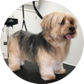 Inclui tosquia higiénica, tosquia máquina, tesoura ou stripping, remoção dos pelos do canal auditivo, limpeza dos ouvidos, corte de unhas, banho com champô neutralizado de odores + champô adequado ao tipo de pelo + condicionador, máscara de hidratação em pelo longo, abrilhantador e perfume.